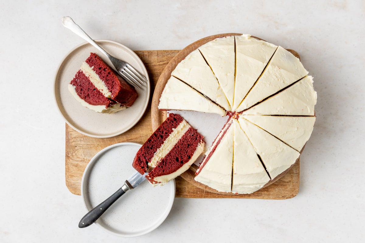 Het aantal red velvet cakes kun je aanpassen in de winkelwagen.