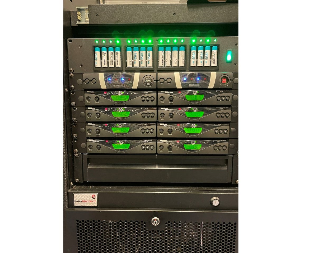 8 draadloze microfoons, met digitale 18 kanaals mixer in trolley. Keuze microfoon type altijd in overleg. Altijd in combinatie met een geluidset of uw eigen zaal installatie. Geluidset is niet inbegrepen.